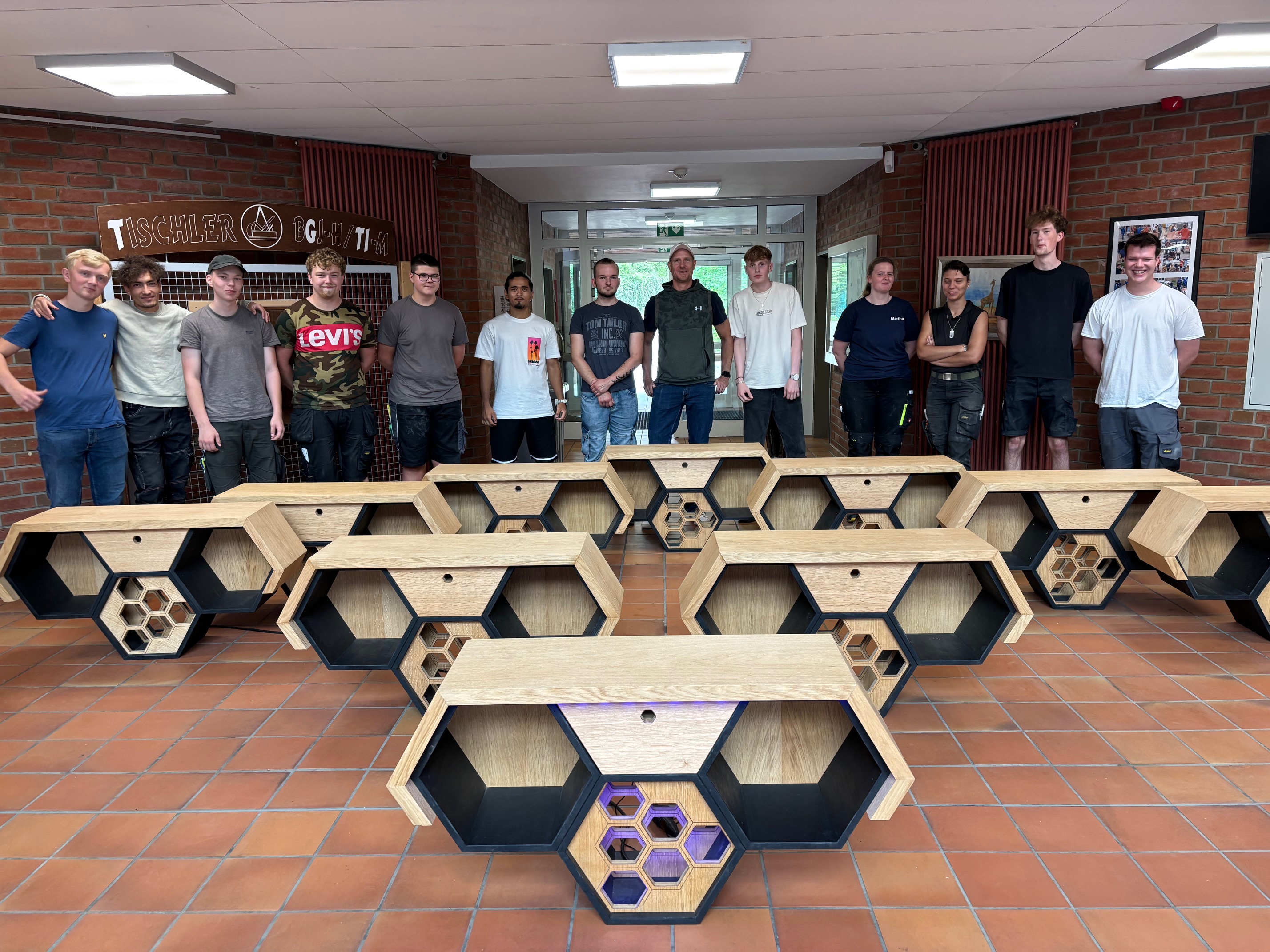 In diesem Jahr beendeten an der Beruflichen Schule des Kreises Ostholstein in Eutin 13 Schüler des Berufsgrundbildungsjahres Holztechnik erfolgreich den Bildungsgang mit einem komplexen Abschlussstück, von dem jeder ein Exemplar erhielt. In etwa 100 Unterrichtsstunden planten, gestalteten und fertigten sie gemeinsam mit ihrem Fachpraxislehrer Herrn Marx das Möbelstück, an dem sich die verschiedenen Schwierigkeitsgrade des Tischlerhandwerks ablesen lassen.