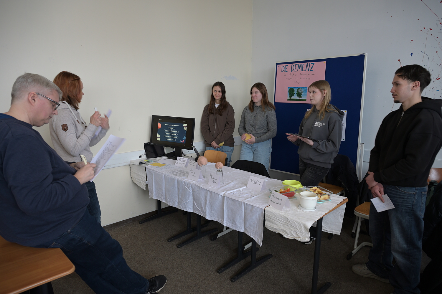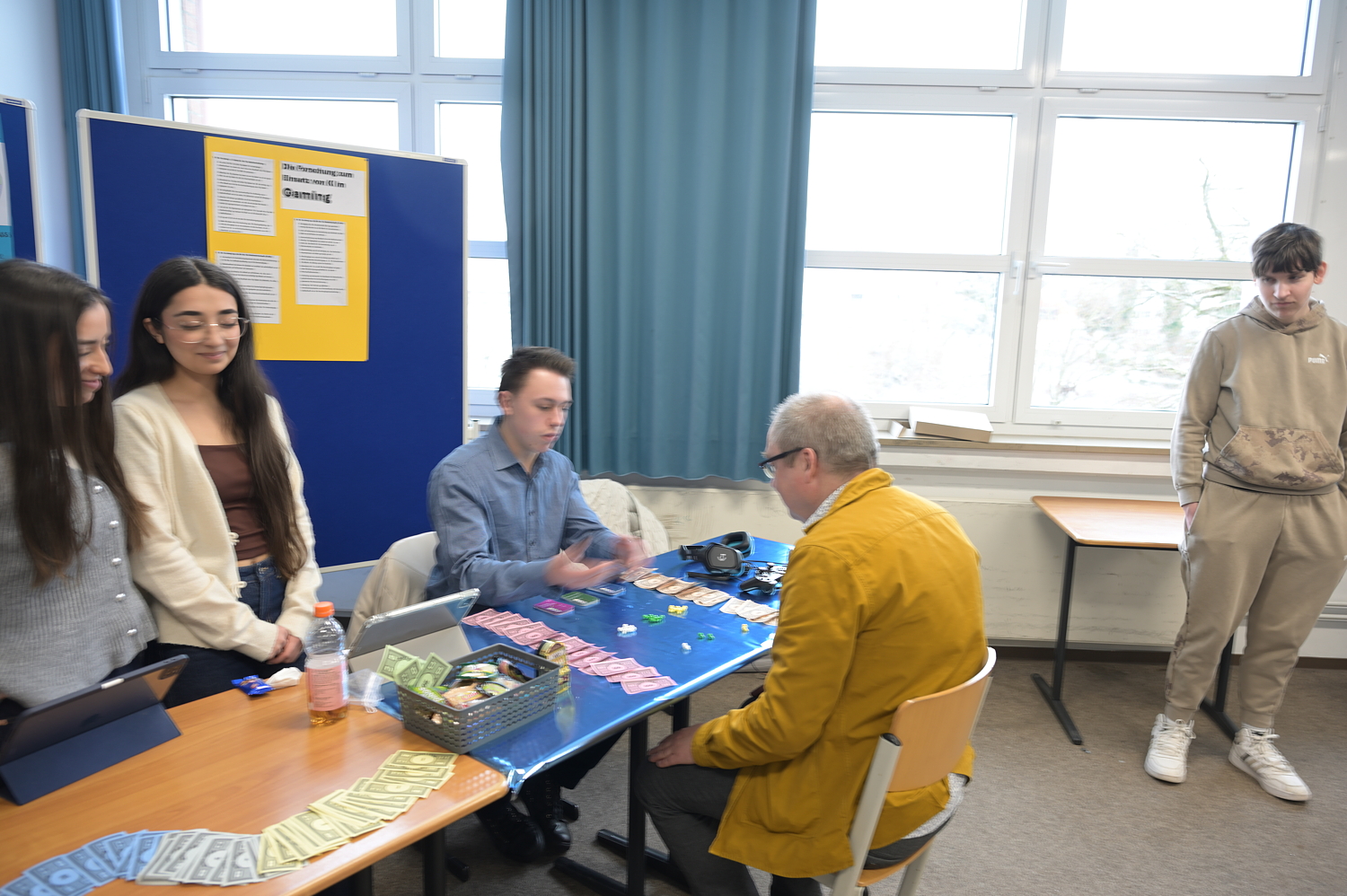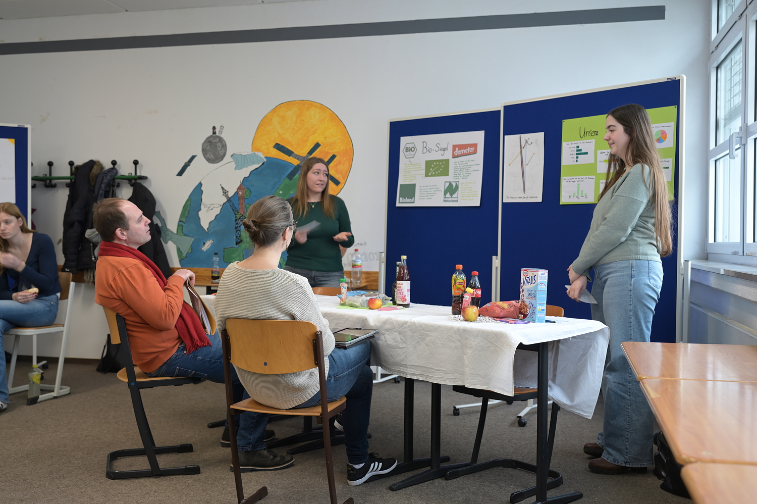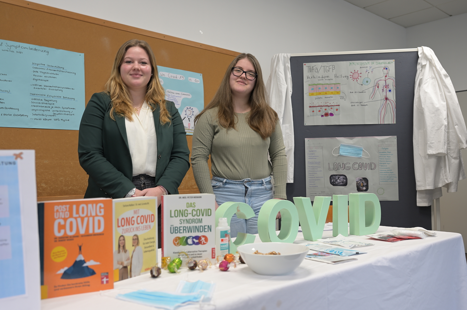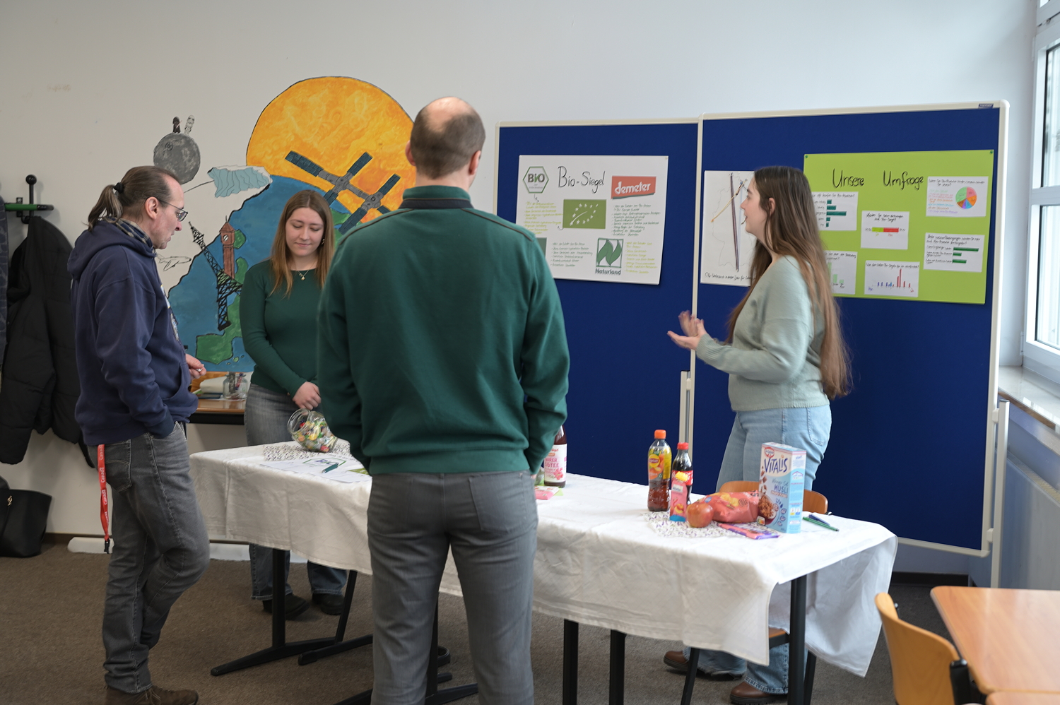 So wurden die Besucher informiert über die Wirkung von Vitamin D, ein Raketen-StartUp, Seegras als nachhaltigen Werkstoff, Schlafforschung, verschiedene Bio-Siegel, »KI« im Gaming, Arten und Wirkungen von Süßstoffen, Demenz, Stuhltransplantationen, Covid / Long Covid und vieles mehr – eine beeindruckende Vielfalt an Themen, vorgestellt von souverän auftretenden Schüler*innen als Expert*innen für ihr jeweiliges Fachgebiet.